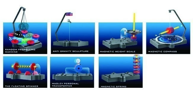 Make a pencil float in midair, engineer a personal transporter using the principle of the maglev train, construct a metal sculpture that defies gravity, A random motion machine which swings unpredictably, and more. All seven projects in one! It’s amazing!