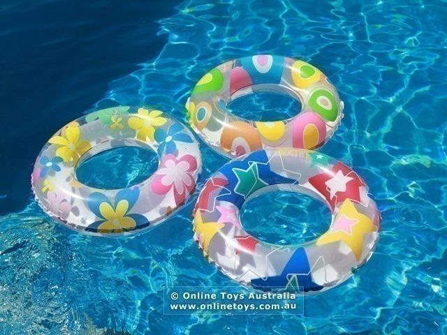 Assorted, 60cm, heavy duty inflatable swim ring in assorted colours and styles. Suitable for children 3 Years and over.