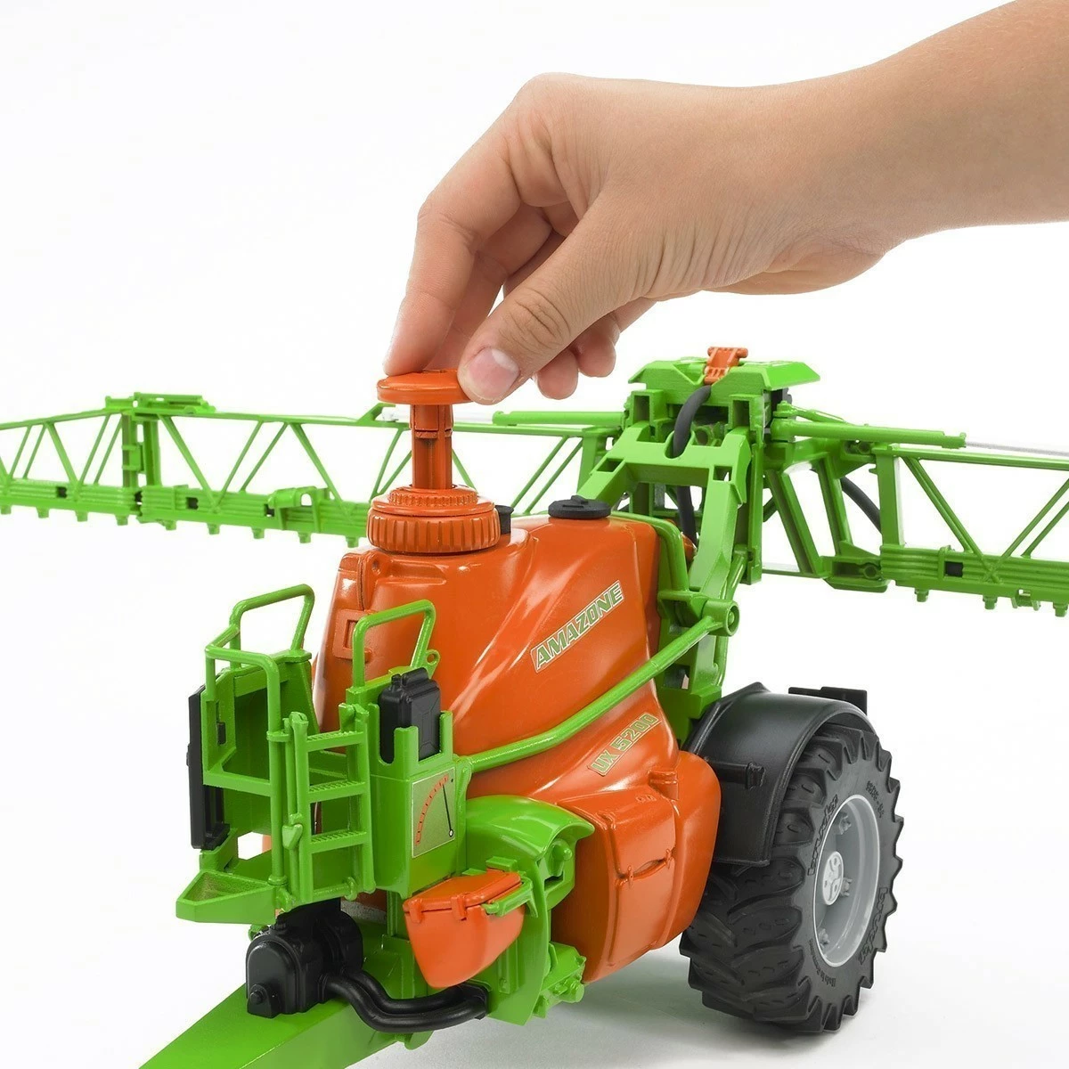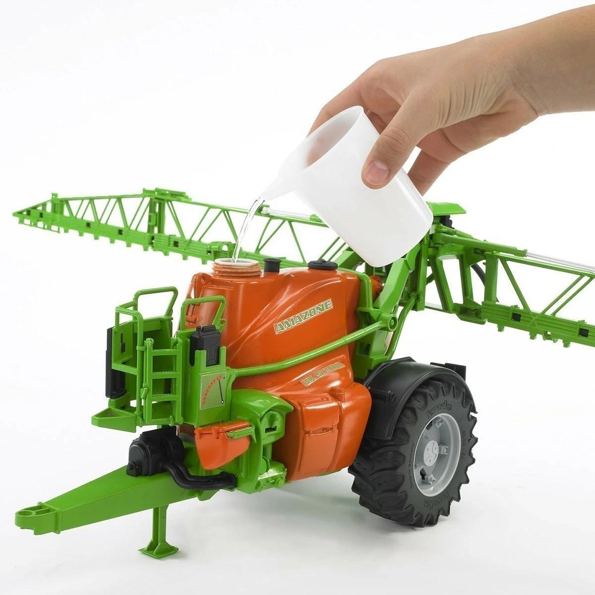 As the leading manufacturer of model agricultural vehicles, BRUDER has designed a trailed sprayer on a scale of approx. 1:16 and underscores its exceptional market position by the many realistic characteristics integrated into this model.