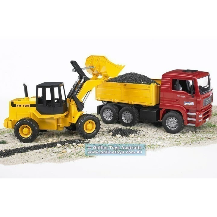 This set includes both the MAN construction truck and a wheeled tractor so that the fun can begin straight away. The sides of the construction truck can be folded down on three sides to unload the transported goods in all three directions. The trough can also be tipped and latched. The articulated road loader FR 130 has a moving front axle and a fully functional bucket arm that can be locked into position. To extend the playing options, the MAN TGA Construction truck can be equipped with the Light and Sound Module by simply plugging in the module (not included, sold separately).