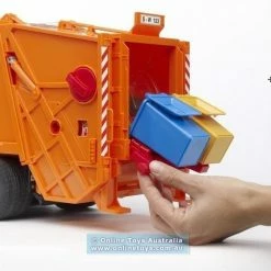 The mirrors of the SCANIA truck can be folded in and the doors can be opened. The complete loading and unloading process of the garbage truck is controlled by a unique turning wheel mechanism where two bins can be emptied at the same time. The same procedure is also possible for the refuse container due to the flexible support console.