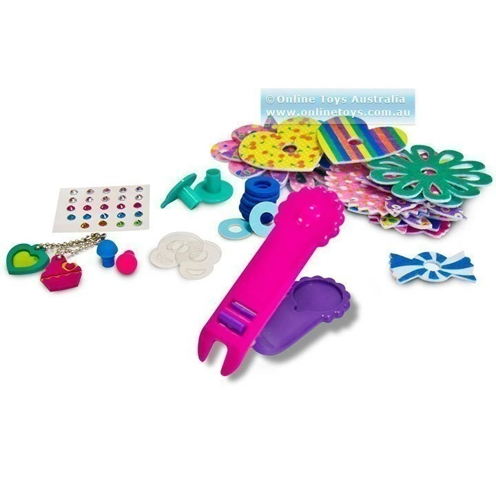 Create amazing fabric flower fashion accessories with the Bloom Pop Maker. Bling up your Bloom Pops with sticky gems and cute silicon charms. Display your creations by using the sticky rings to place them on your wall and favourite stuff!