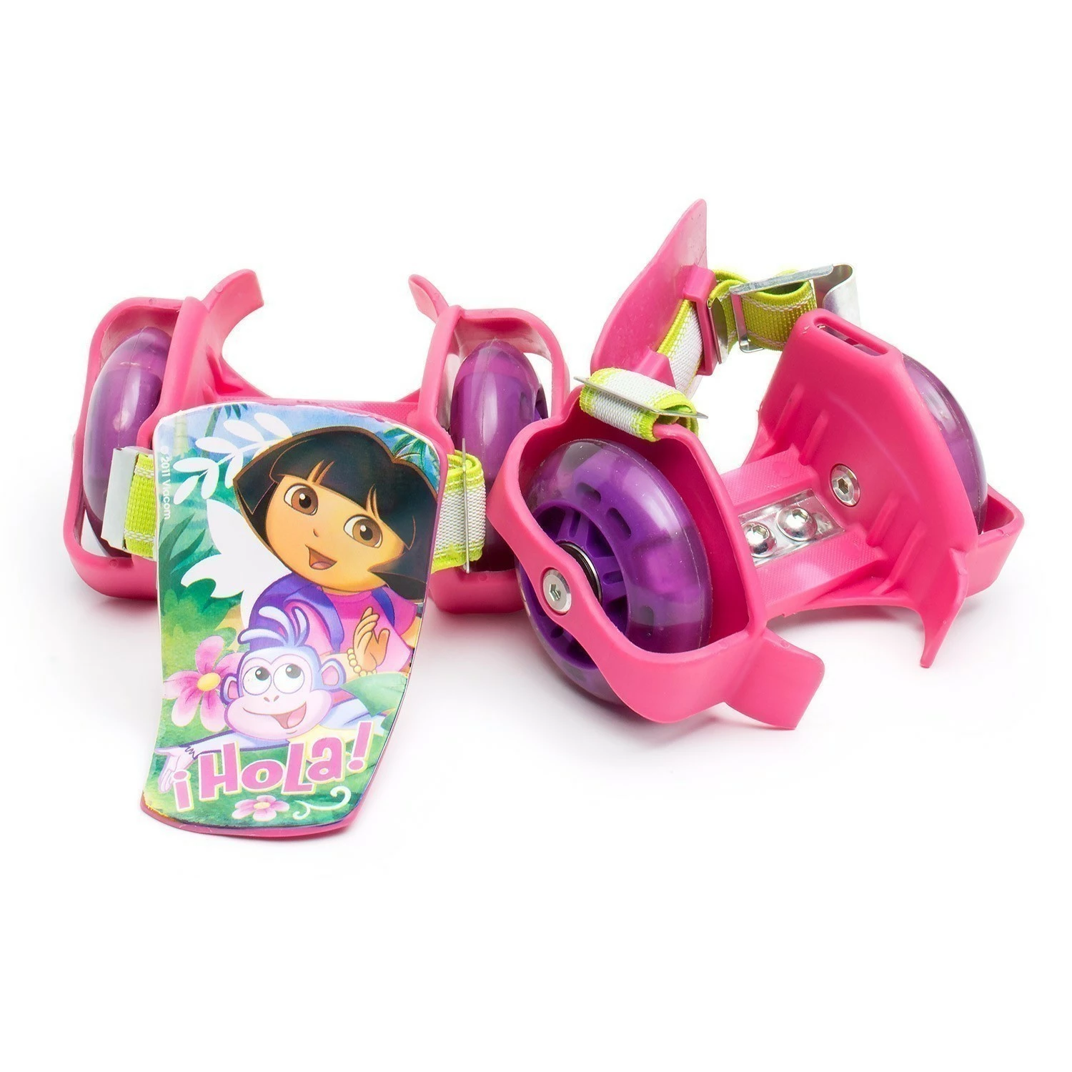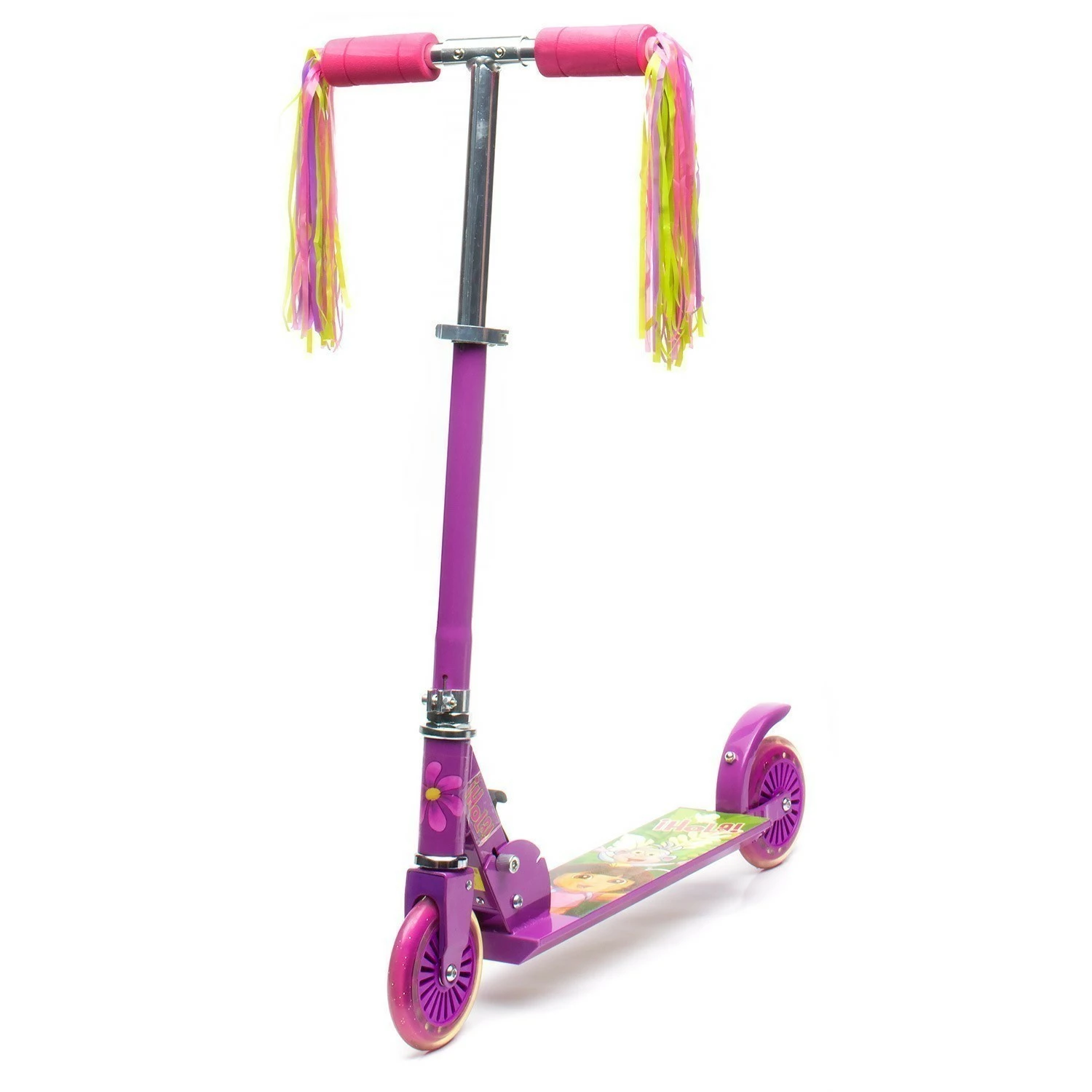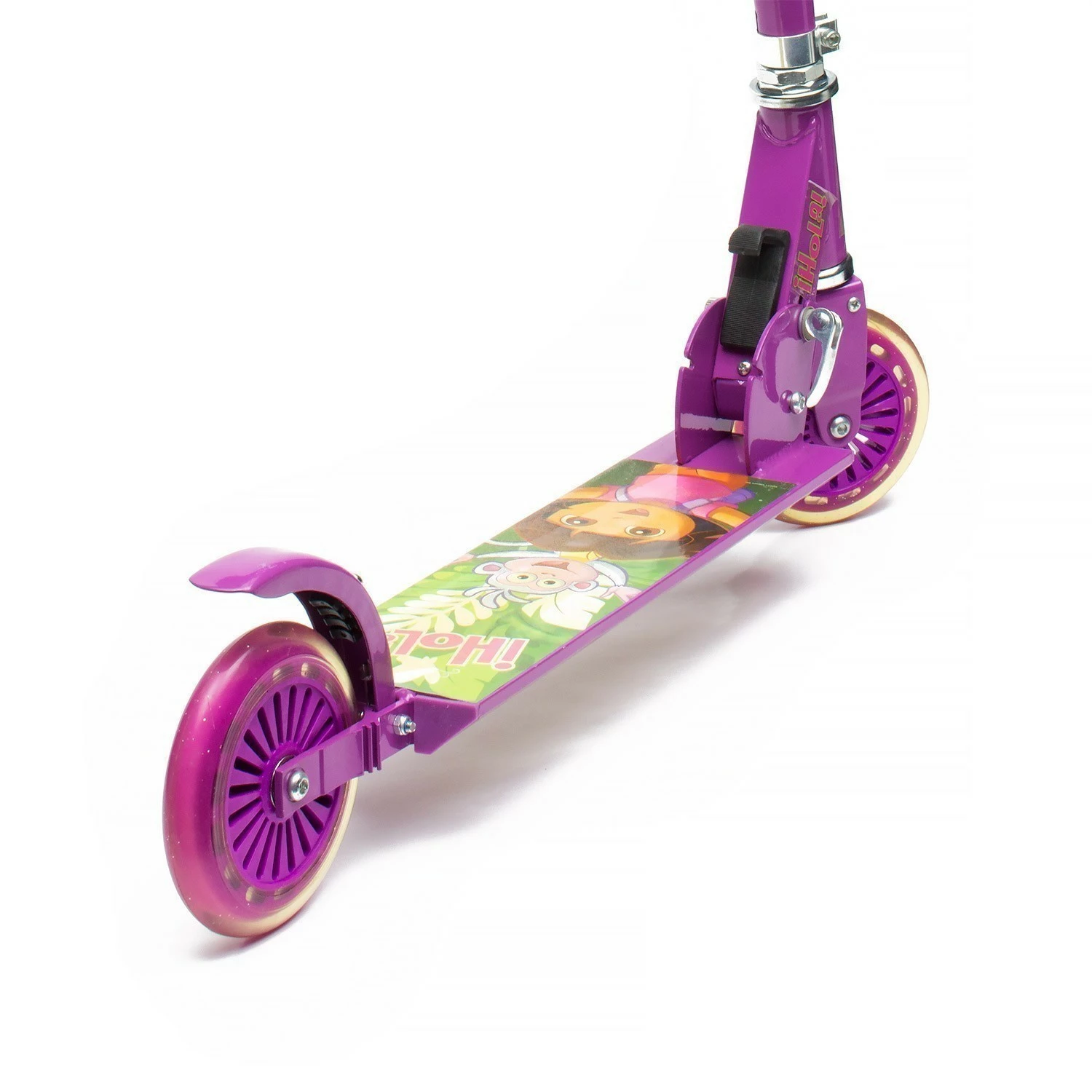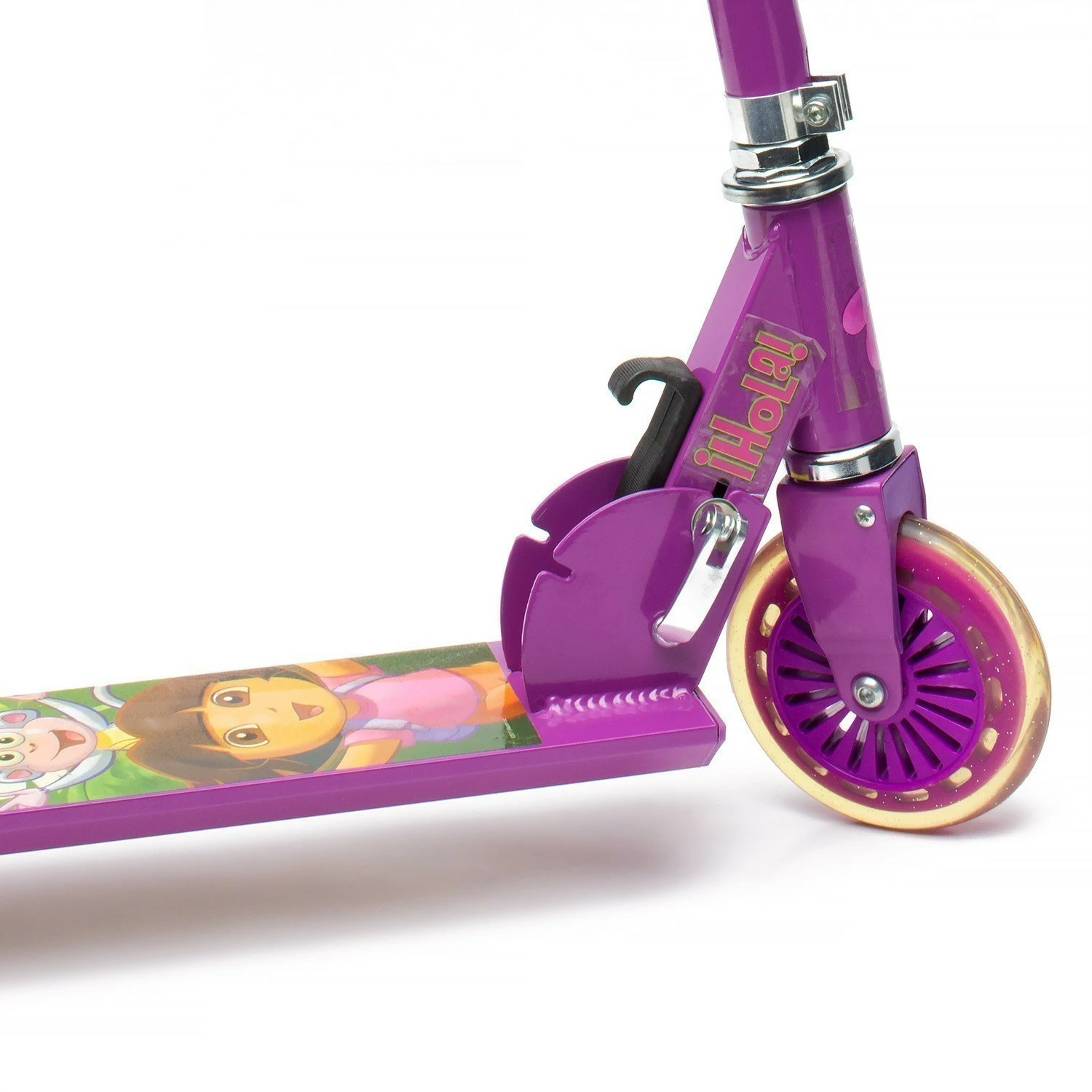 Foldable Alloy Scooter features Dora the Explorer™ decals and trademark Dora the Explorer™ colours. Strong alloy frame supports children up to 50kg in weight. Stopping is quick and easy – just remember to stomp on the rear guard to apply friction to the rear wheel! When no longer in use, just fold it away for easy storage or easy transport in the car. Scooter includes heel skates for extra fun. Size/dimensions 62 x 10 x 19cm.