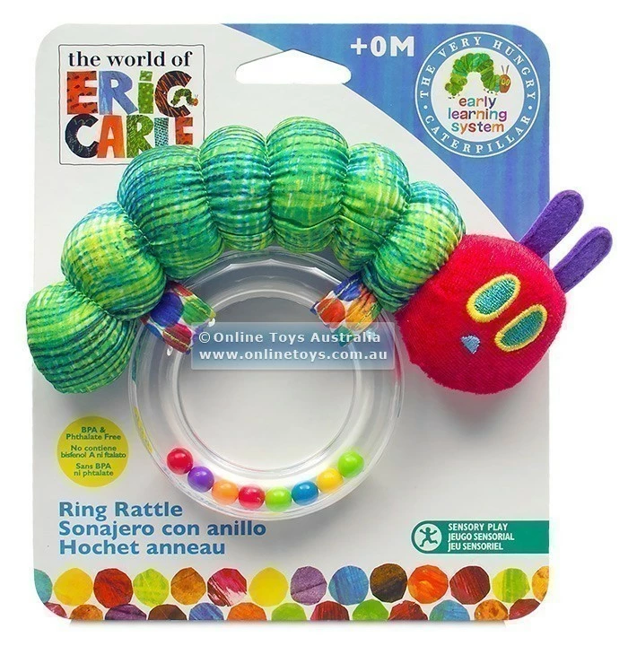 This Very Hungry Caterpillar Ring Rattle is bursting with features to make life easier for mum and baby! Soft, baby safe construction and an open ring design make it great for little hands to grab, whilst the moving beads add visual stimulation and aid in auditory development.