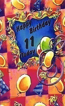 Happy Birthday – 11 Today Birthday Card includes the following message inside: “This special cards brings wishes to you, for a day that is happy all the way through. Happy Birthday.”