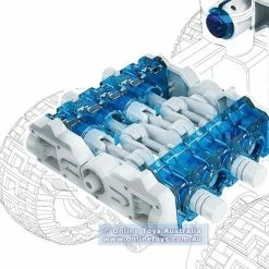 Be amazed at the power of salt water! Just by adding a few drops is enough to make this engine run, just like magic. Transform the engine’s design from a ‘V’ engine type to a flat engine type for an alternative view on engine configuration. With its height adjustable and twist-body design, 4 wheel drive traction and its amazing salt-water powered engine, this vehicle is both fun and educational too! Kit teaches children about new forms of clean green energy while all materials used in this kit are also environmentally friendly to create an all-clean, all-green concept. Let the learning begin!