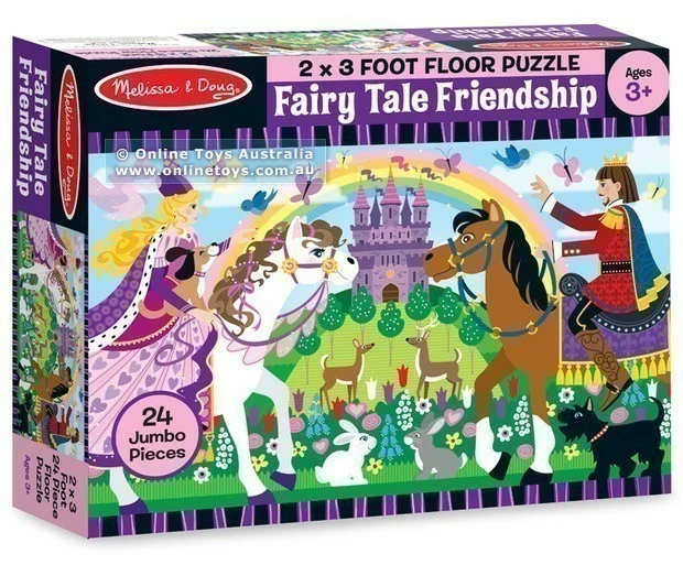 The friendly prince and princess invite you into their glorious kingdom under the rainbow. 2′ x3′ (61 x 91cm) when complete Puzzle features 24 extra-thick pieces with an Easy-Clean surface to keep them looking like new.