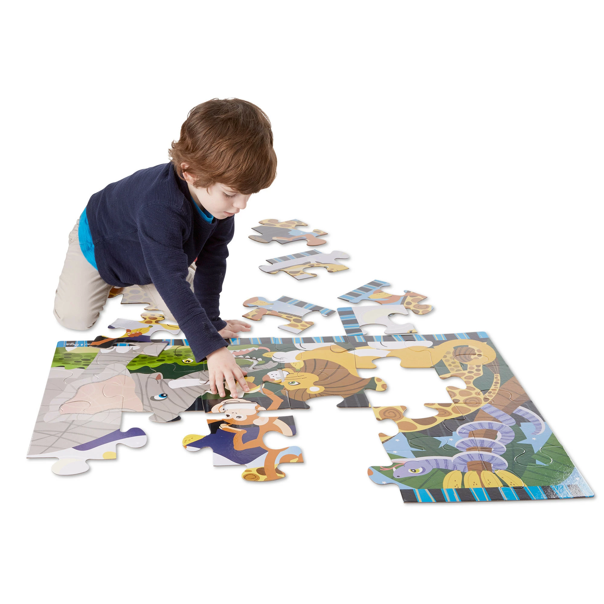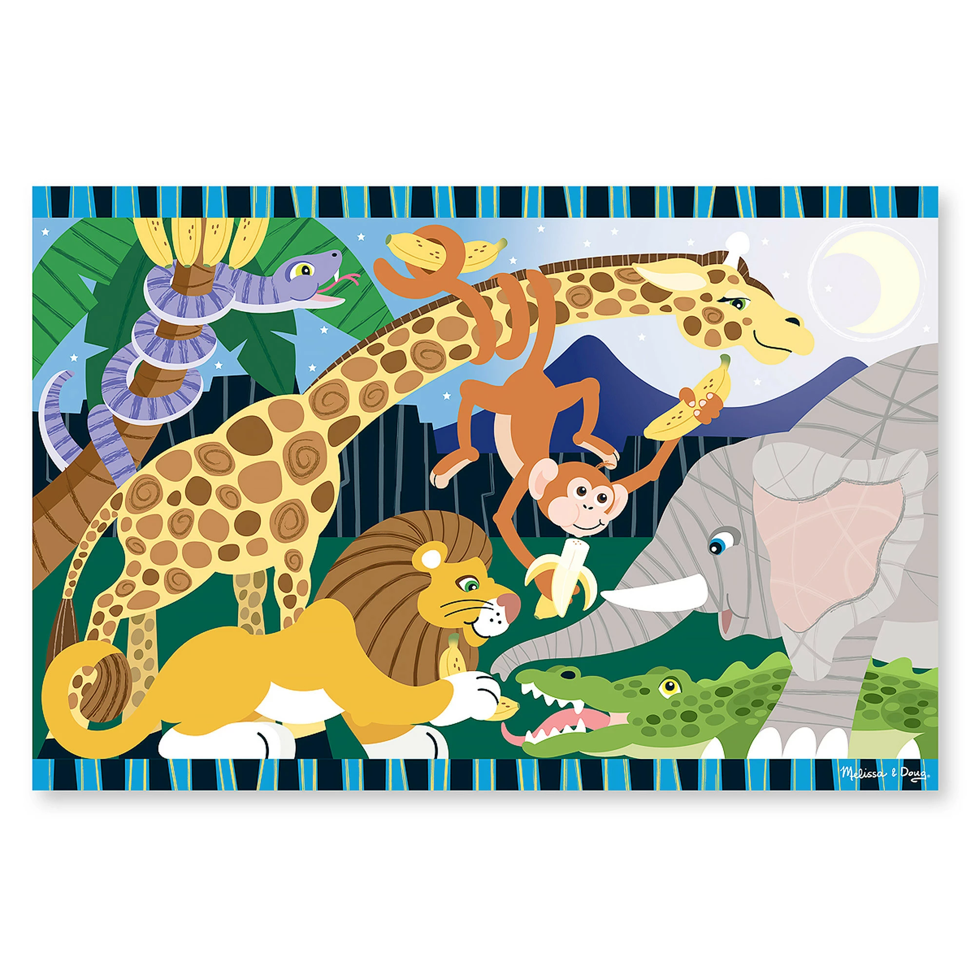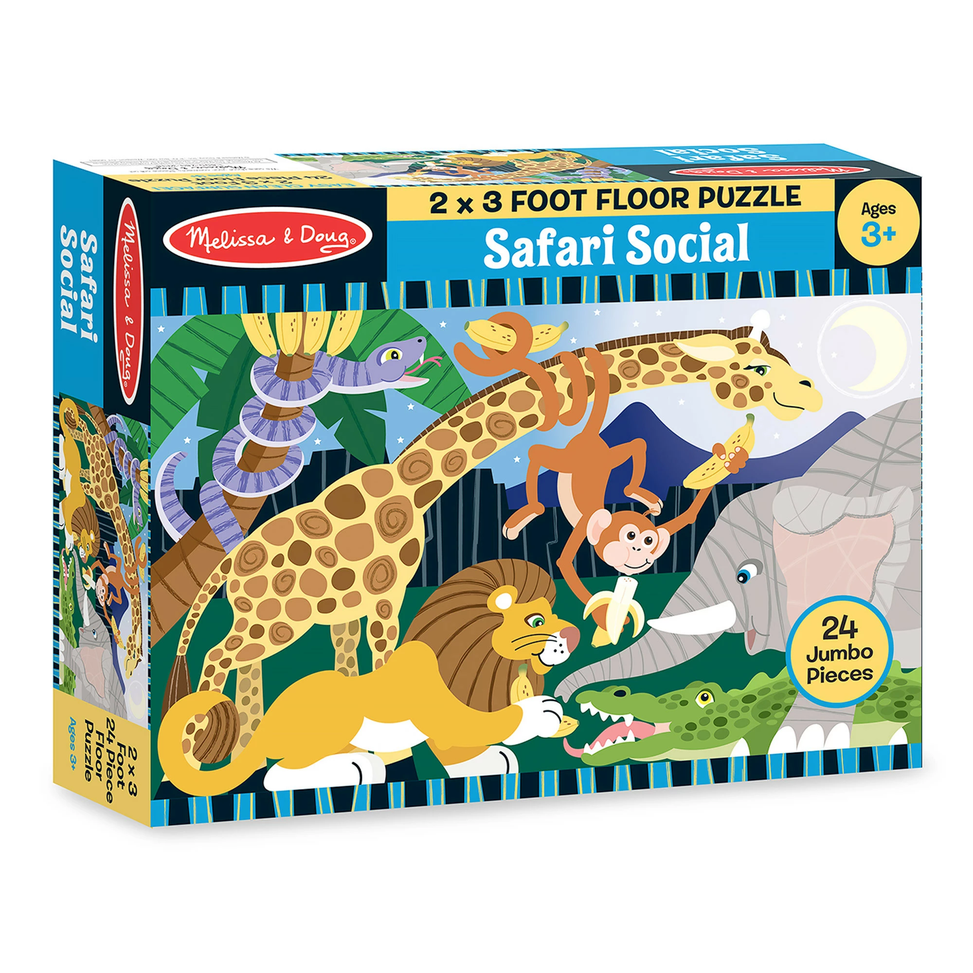 A bunch of wild animals are having a party with a bunch of bananas in this wild animal cardboard floor puzzle. 2′ x 3′ (61 x 91cm) when complete. Puzzle features 24 extra-thick pieces with an Easy-Clean surface to keep them looking like new.