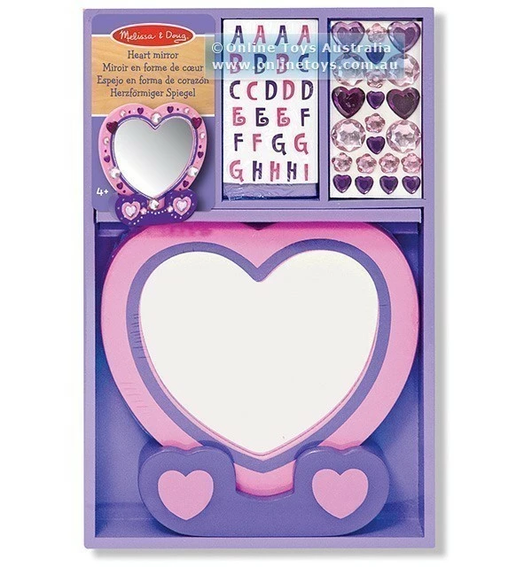 The “sweetest” two-piece wooden mirror is ready to reflect the creativity of your little crafter. The wooden heart mirror comes in a handy wooden tray that keeps glitter glue, craft glue, jewels and stickers organised.