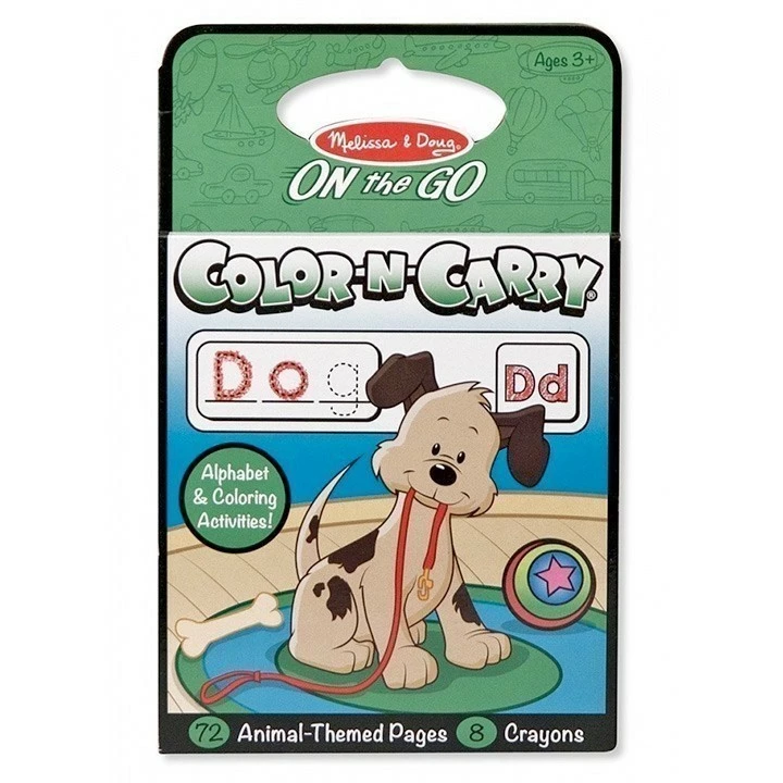 Colour-N-Carry travel colouing books are a travel toy and art activity in one! This animal-themed set has a built-in set of eight crayons that stores neatly at the back of the book. When it is time to colour, the entire marker box hinges out to the side – so both the crayons and book are easily accessible but still contained and organised. Bonus: The wide, rigid back makes the perfect lap desk for colouring on the go! The animals activity book for kids includes 72 pages of alphabet and colouring activities, all bound in a handy, compact pad. Close it all up with a self-stick closure when the journey is over!