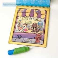 No-mess painting for kids! This exciting paint-with-water colouring book includes four reusable pages and a refillable water pen. Simply use the pen to colour in each scene – details and vibrant colour appear with every stroke! Then let the page dry to erase the pictures and fill it in again and again. This animal-themed book includes four scenes to colour, and a search-and-find activity for each scene. The chunky-sized water pen is easy for kids to hold and stores neatly right in the front cover, so Water WOW books make ideal travel activity books and travel toys for kids!
