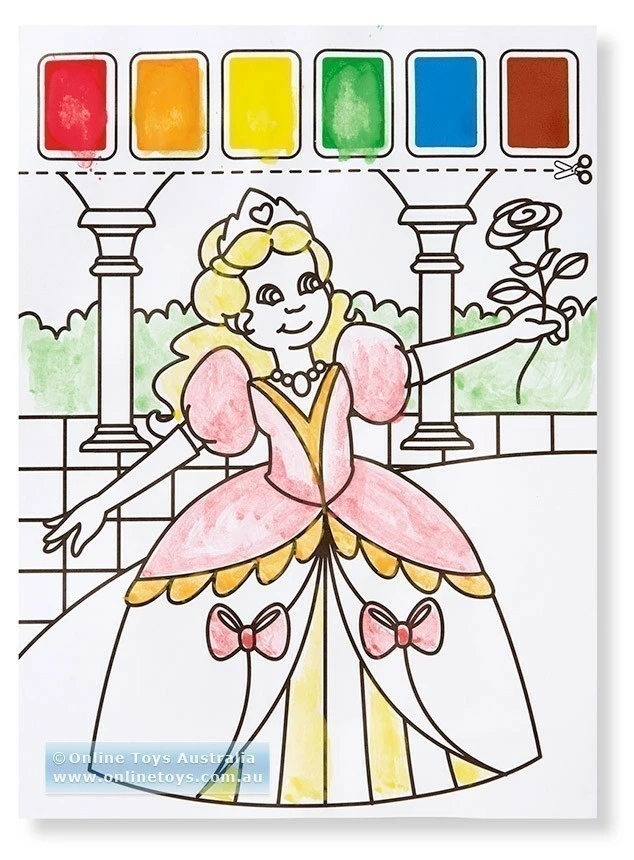 A special paint palette is embedded right in the pages of this all-inclusive art activity. With a cup of water and the included paintbrush, beginning painters can get instant rewards – with no messy paint spills! Included are 20 girl-orientated scenes (pink) to colour and display.