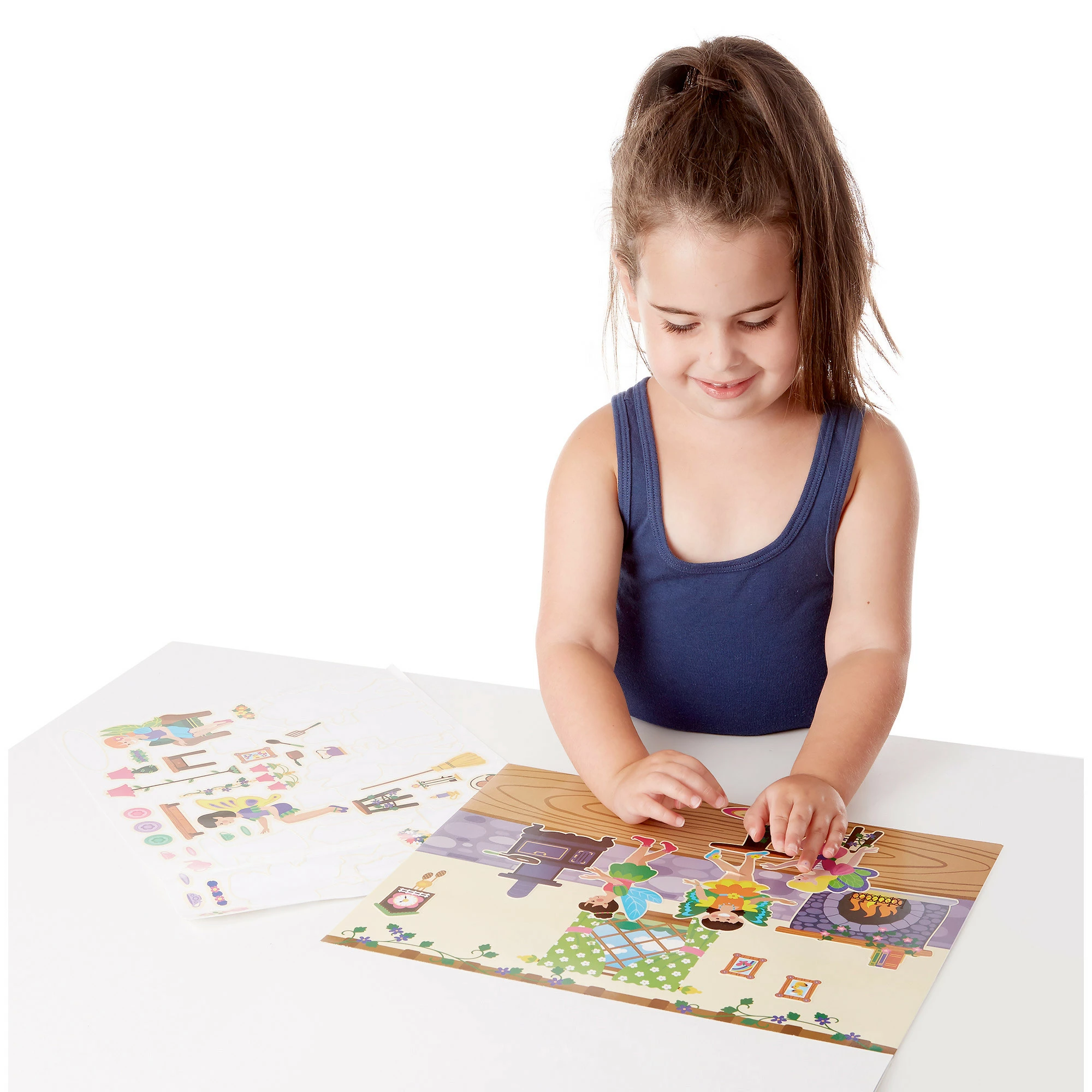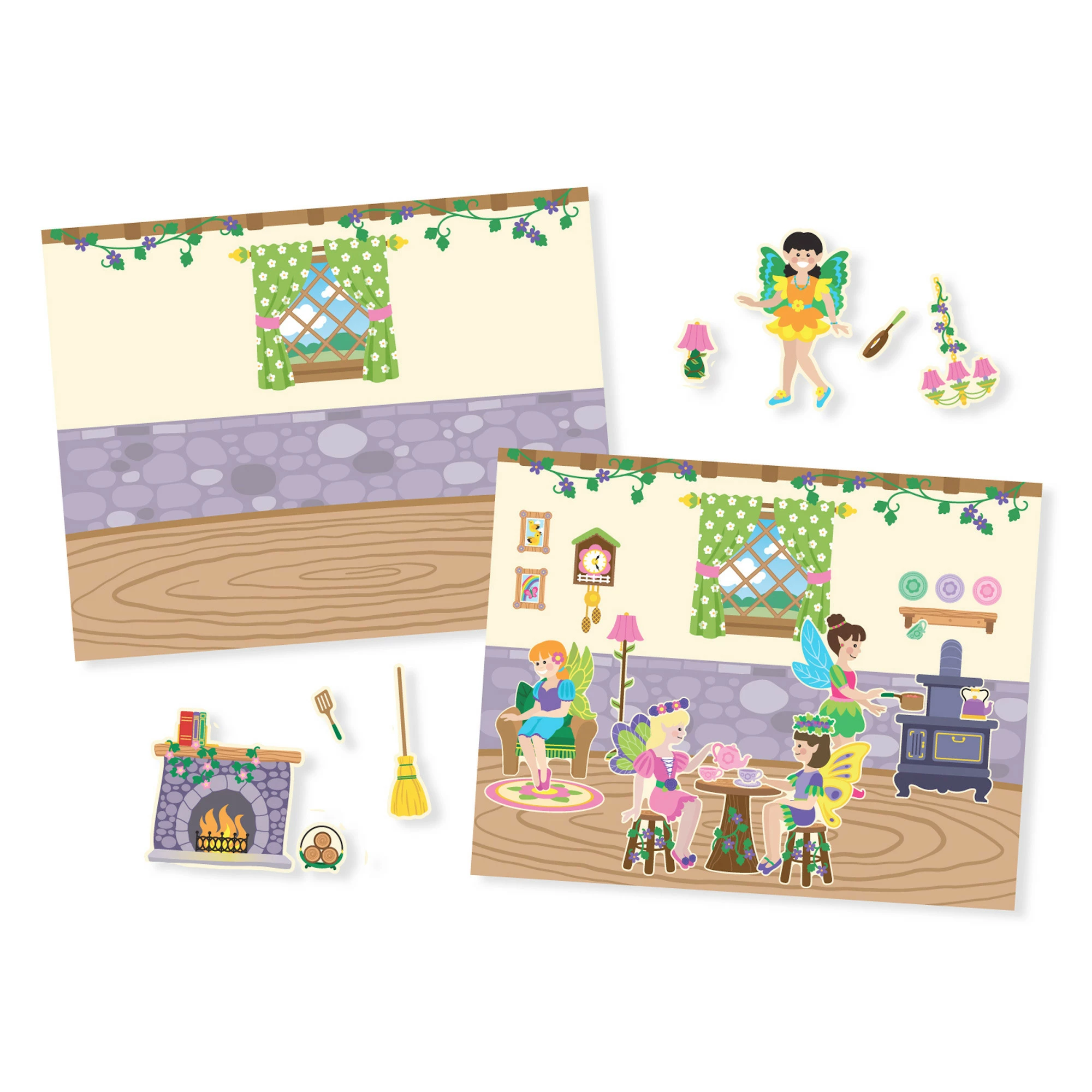 Choose one of the five 5 Fairy scenes, select the sheet of matching Fairy stickers and create a custom scene, again and again! When a scene is not quite right, peel-off and re-apply the stickers easily until the scene is just right.