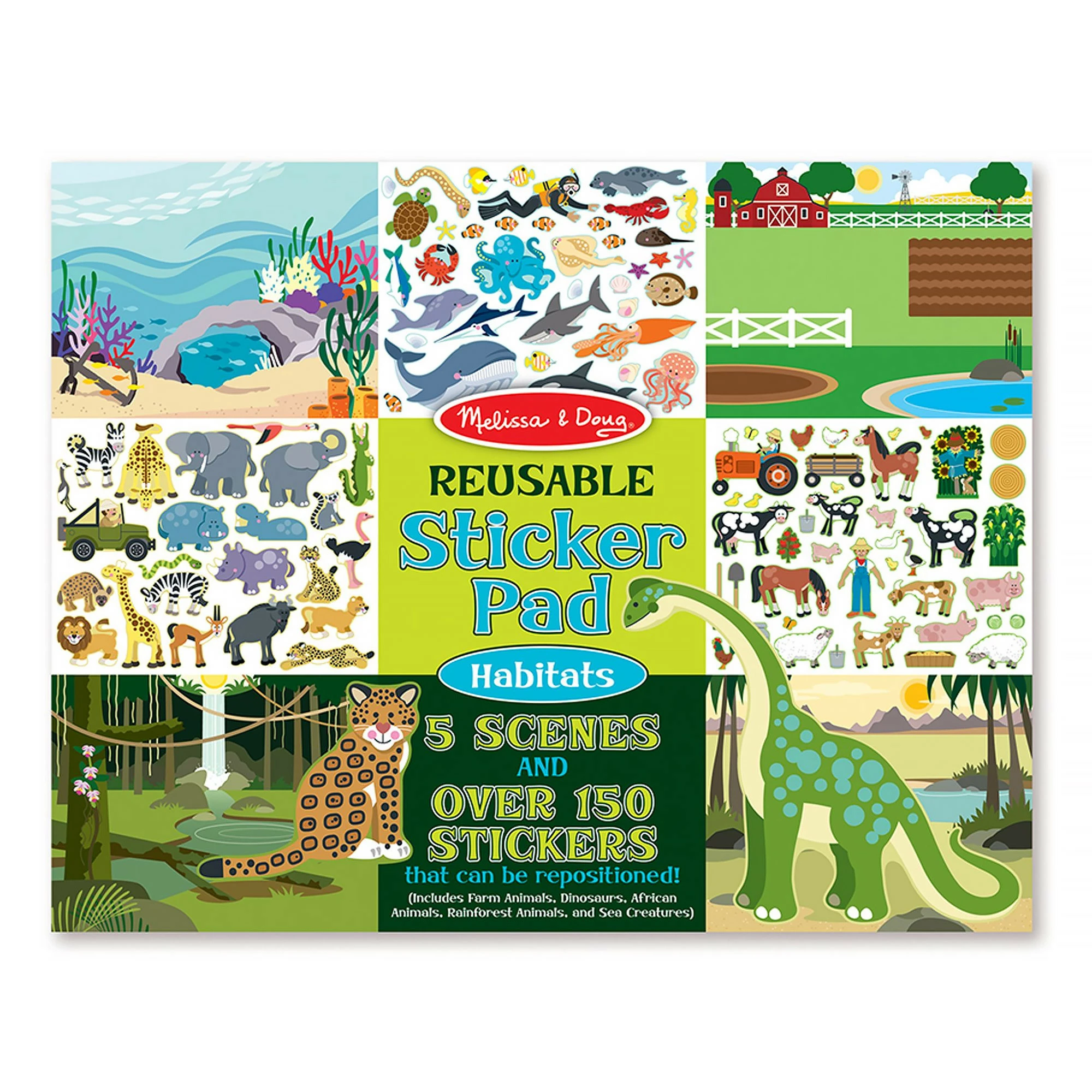 Visit a farm, a prehistoric landscape, a desert oasis, a jungle, or the deep blue sea, all in this interactive sticker book! The glossy, full-colour backgrounds are ready to be filled with over 150 stickers: Stick a dinosaur by the prehistoric pond and a shark in the ocean – or mix them up and make silly scenes!