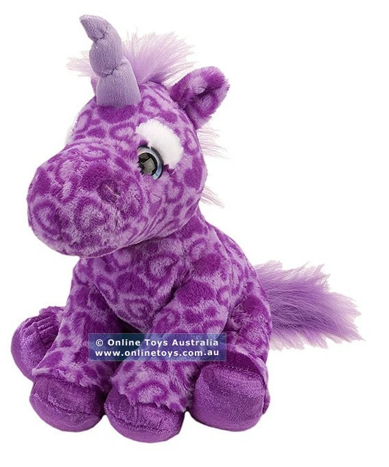 Adorably soft and cuddly unicorn with large eyes and horn. This lovable little unicorn is the perfect size (30cm tall) for on the go companionship or for comfort in bed on a dark stormy night. Size: 30cm. Colour: Purple
