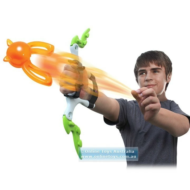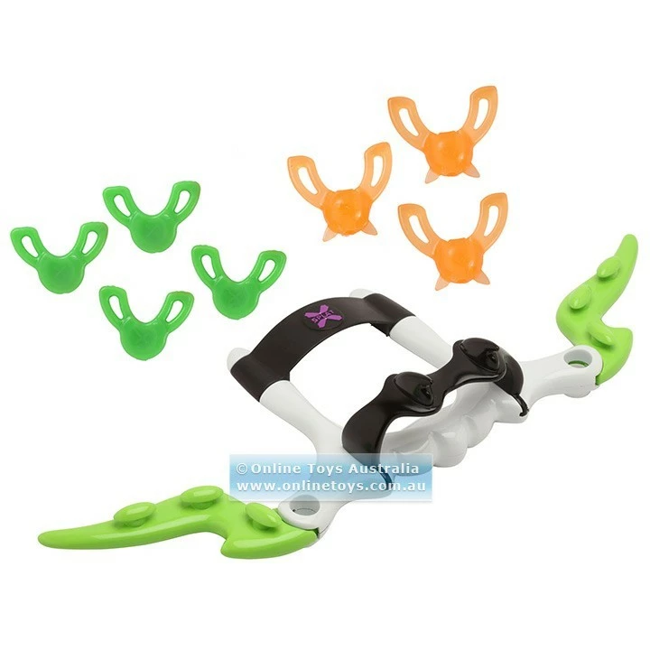 Take aim and challenge your friends with the Zooma Splat X Aero Shot! Pull back and fire the soft gummy ammo in the ultimate battle of accuracy and skill. With space to store six pieces of ammo and retractable arms for easy transport and storage, it’s the ultimate launcher that you can take everywhere! Includes two types of ammo – sticky green wall crawlers and orange long distance ammo that flies for over 30 meters!